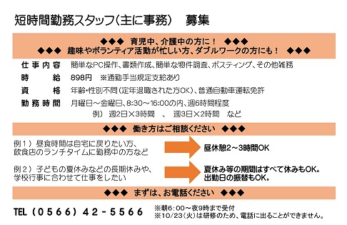碧南市にある不動産の会社です。 事務所がわかりにくい場所にありますが、人目を気にせず、ゆっくり、じっくり、落ち着いて不動産や空き家相談ができる会社を目指しています。 お茶を飲みながらの雑談もOKですよ~(^^)