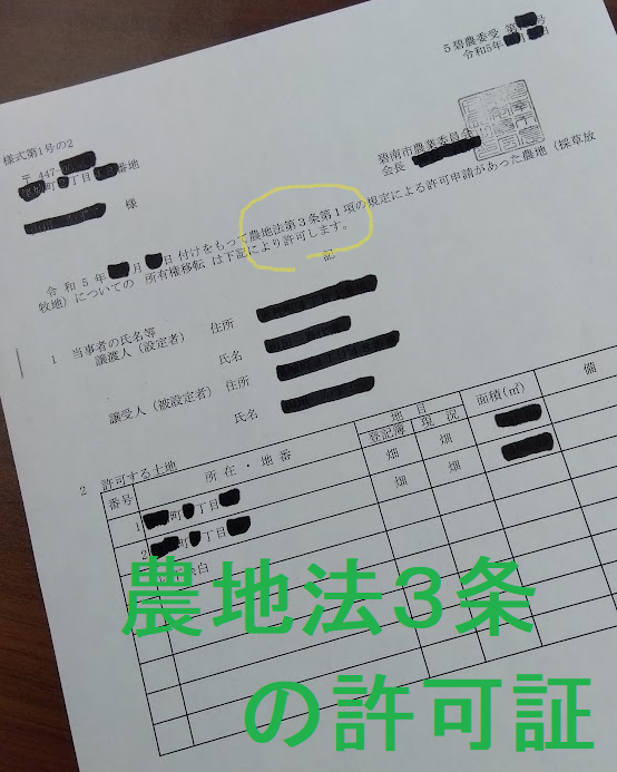 来週、受け渡し予定のK様は、農地法3条の許可申請が必要でした。