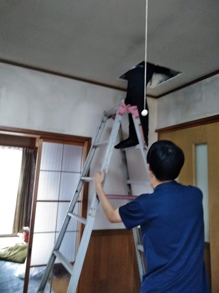 雨漏りの心配な箇所がありましたので、天井裏を確認。