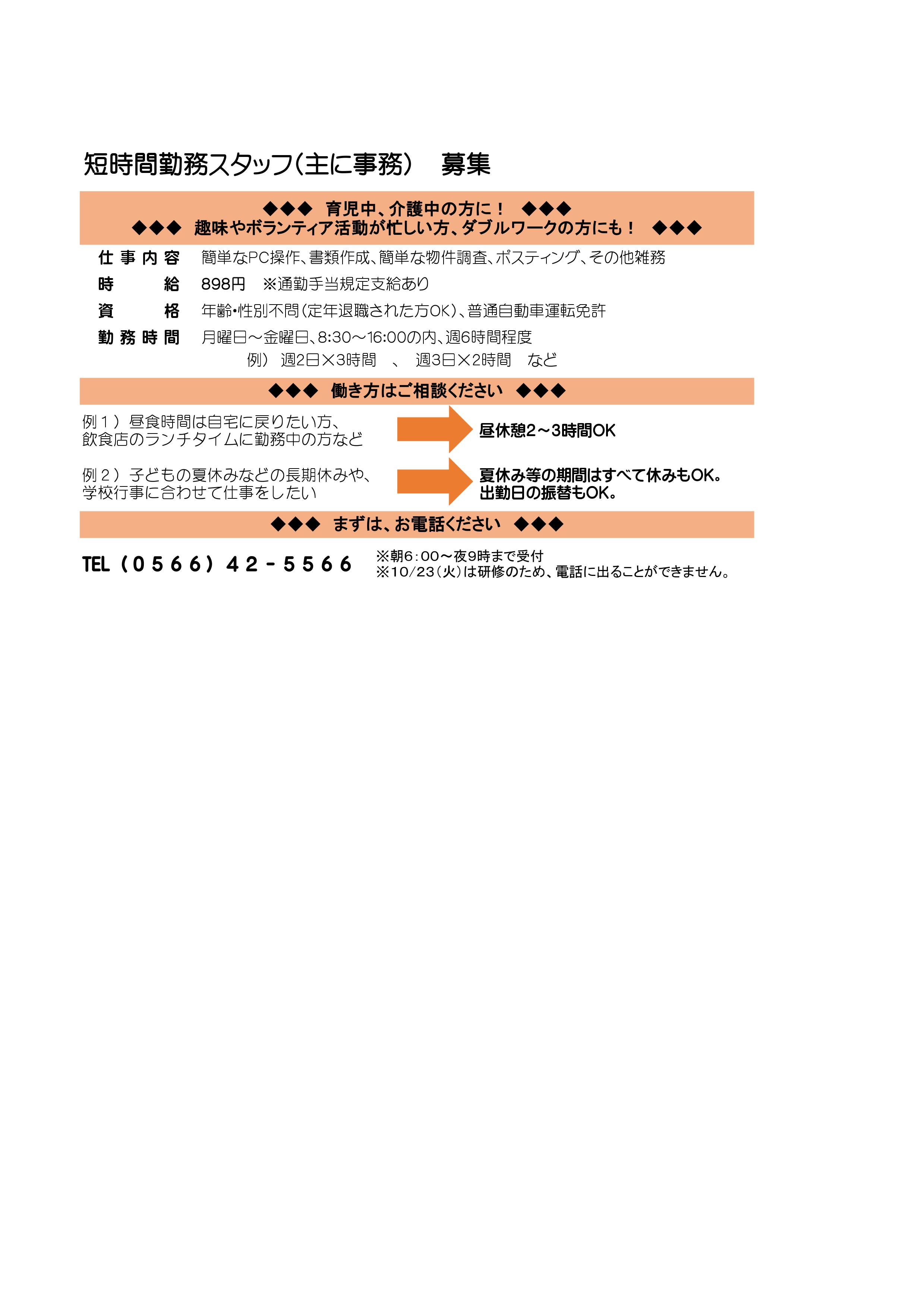 業務内容は、不動産の事務を中心に、付随したお手伝いを。